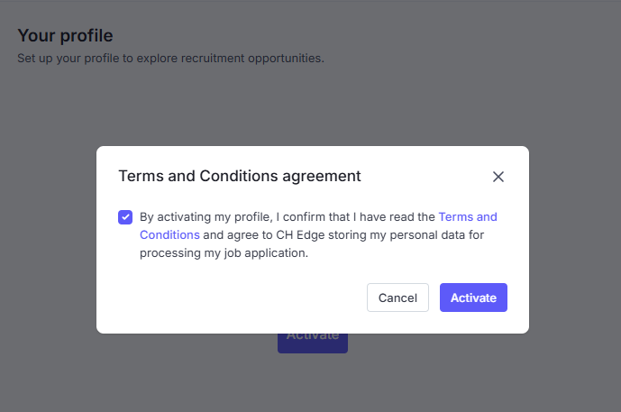By activating your profile, you agree to share your information for recruitment opportunities and confirm that you have read and accepted the [Terms and Conditions]