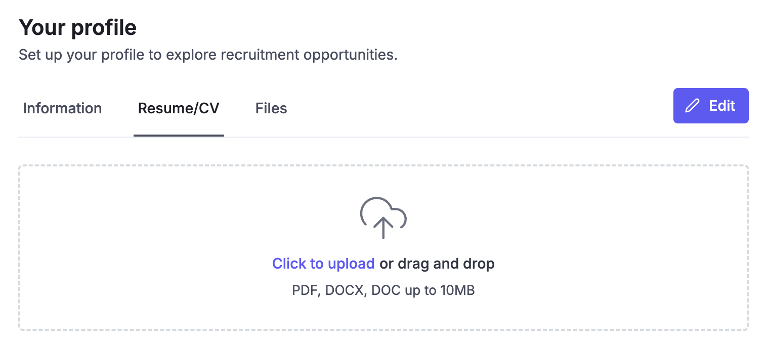 Navigate to Career Hub, then select Profile and go to the Information tab.