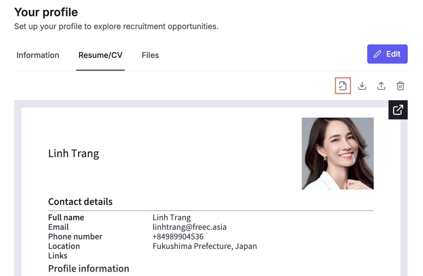 Tab Information help you take overview about your profile, you can Edit your profile by clicking Edit button.