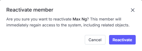 Admins can restore access for a deactivated member at any time.