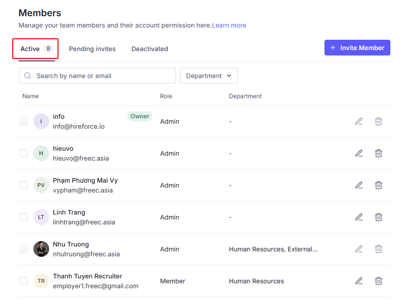 Click the Deactivate icon on the right of the member you need to deactivate.