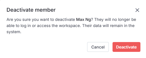 Admins can deactivate a member to remove their access to the tenant without deleting their account.