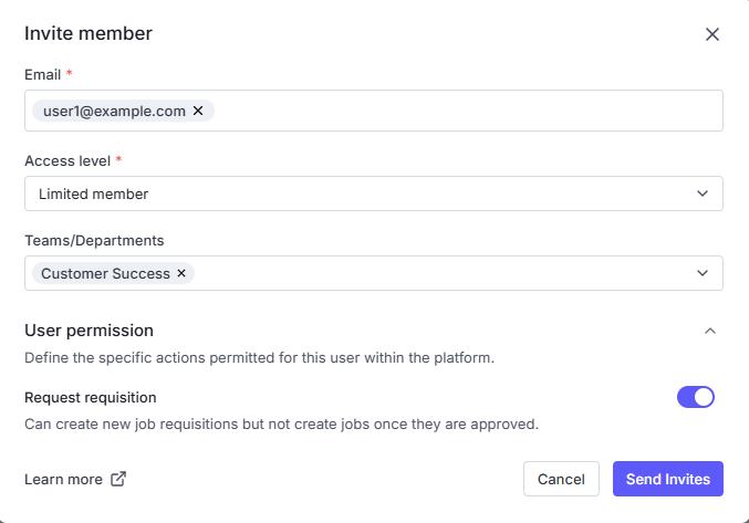 Teams/Departments (Optional): Assign the invited user(s) to one or more teams/departments. This helps organize your team and manage access more efficiently.