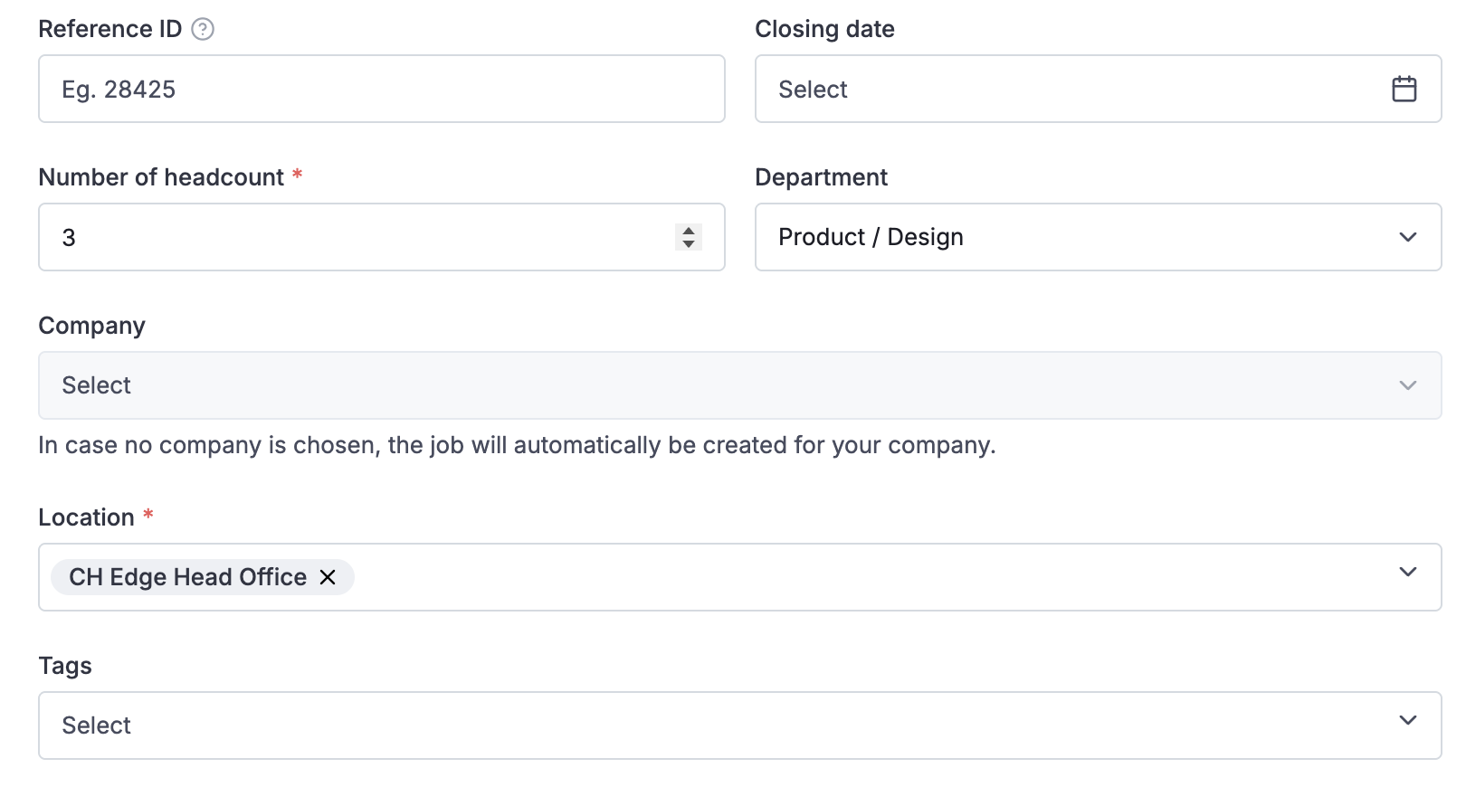 If you leave this field blank, the job will be treated as an internal hiring within your organization.