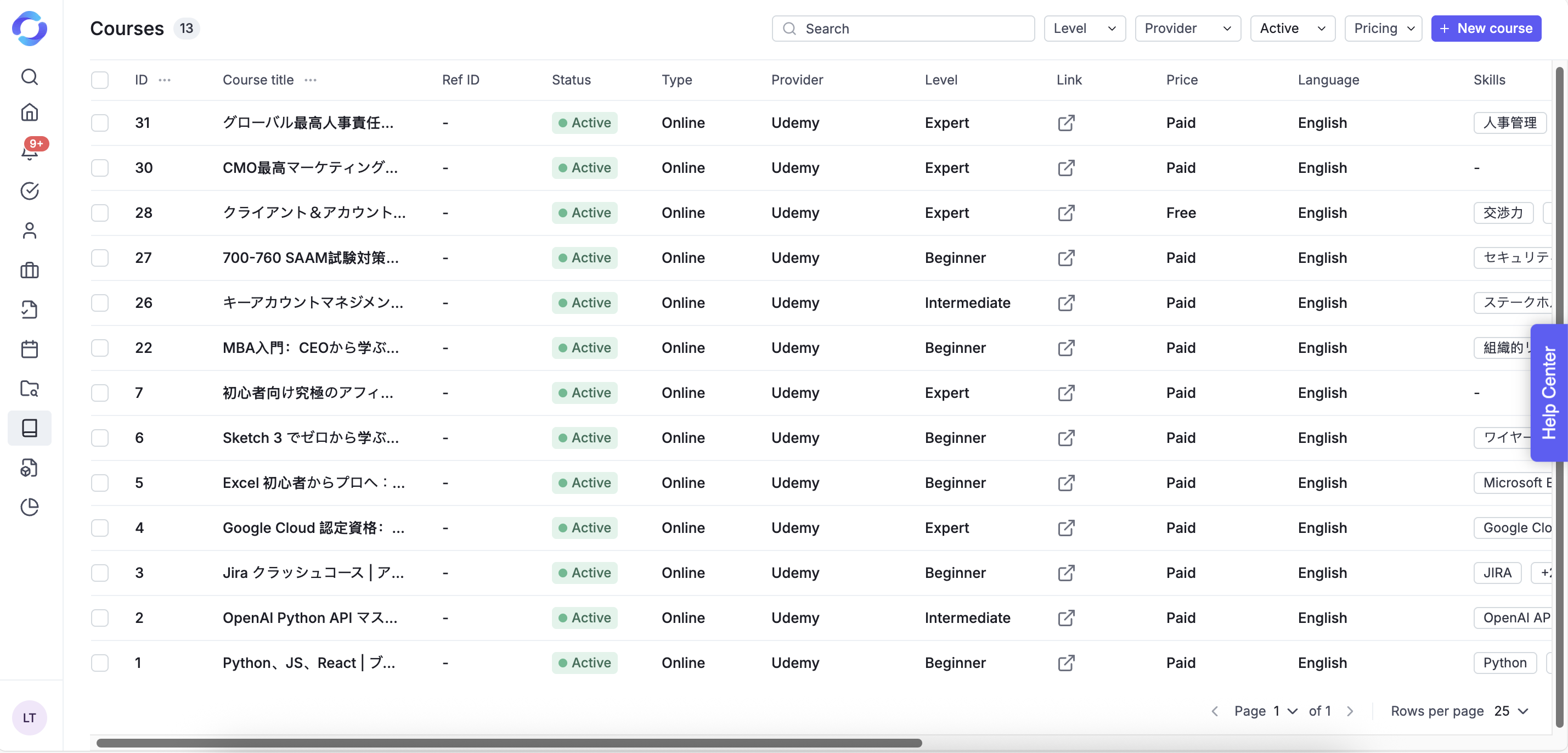 Easily view and manage all available courses in one place. The courses you set up here will be displayed in the Career Hub for members to explore and apply to their career growth.