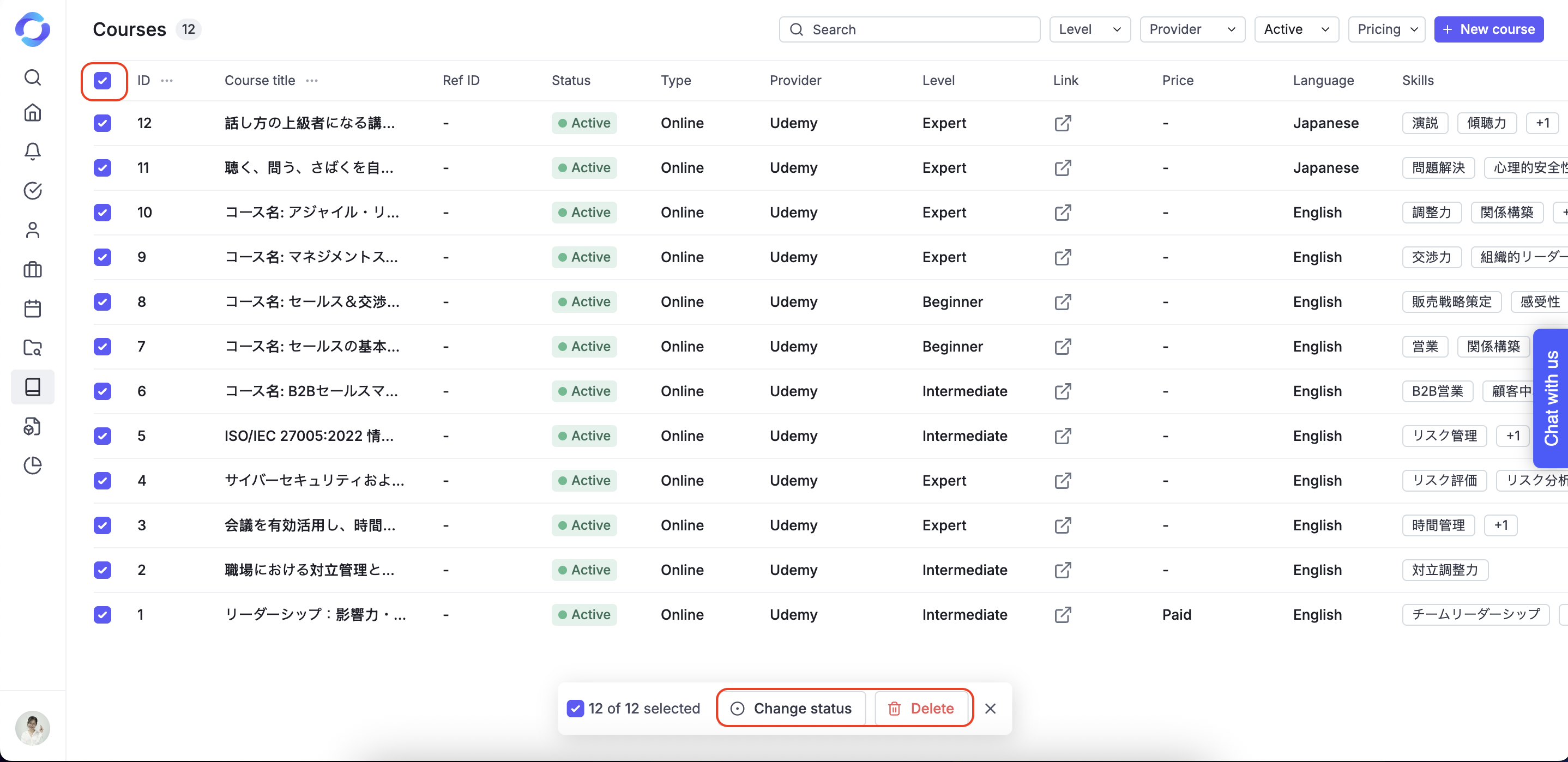 View key information at a glance (Course Title, Status, Level, Language, Relevant Skills, …)