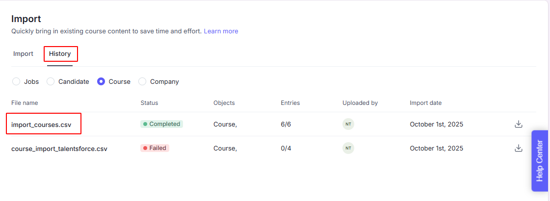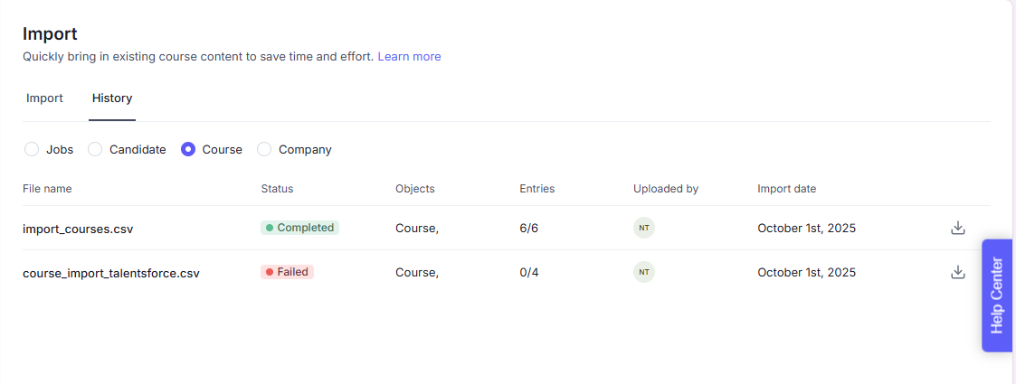 Created At – Date when the course entry was first created. Must follow standard date/time format (e.g., 2025/01/18).