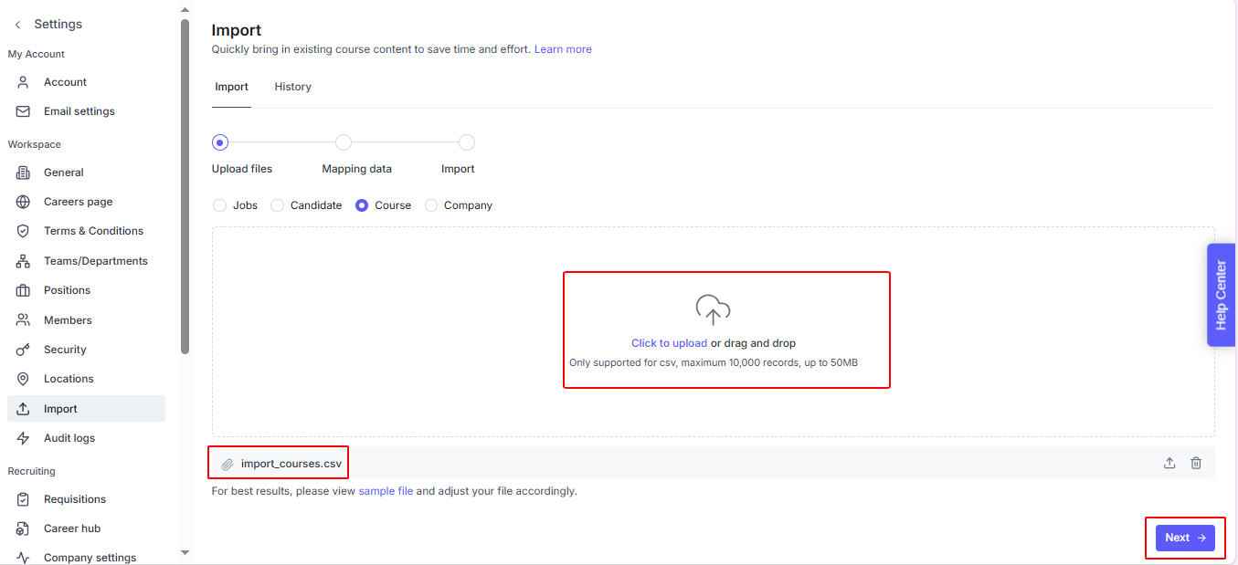 Based on the sample file, we’ve provided guidance for each column to help you enter the correct information. Please update your course list accordingly: