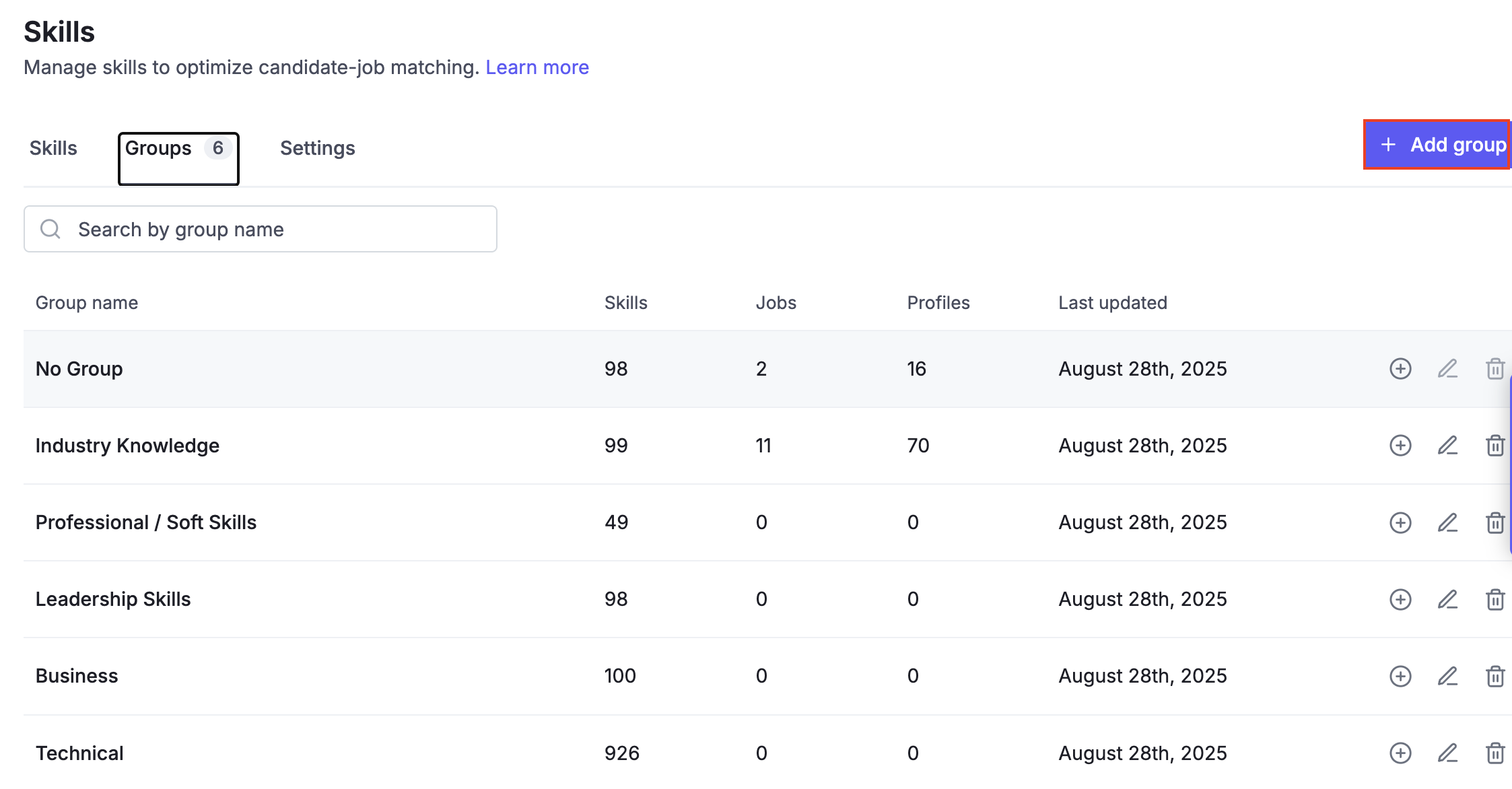 Merge: Combine multiple skills into a single Primary Skill. Useful when you have duplicates or close variations.