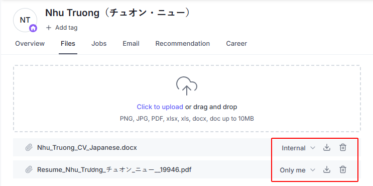 When uploading a file on TalentsForce, you can choose between two visibility settings:
