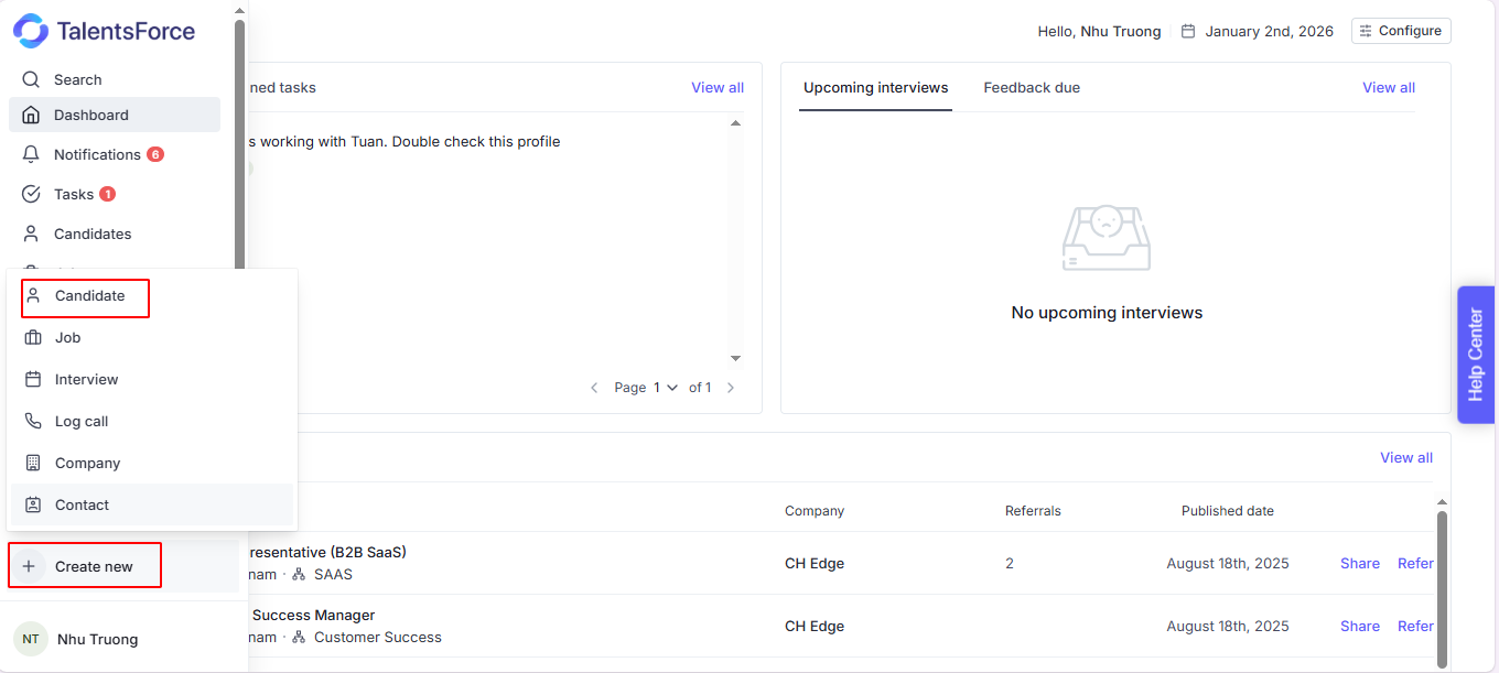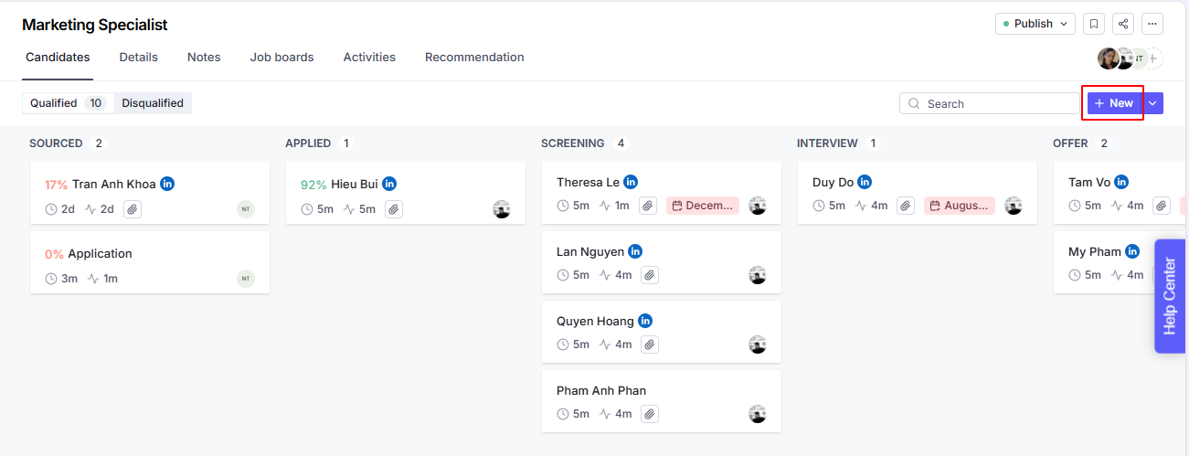 Go to the Candidate page > Click the +Add Candidate button on the top right.
