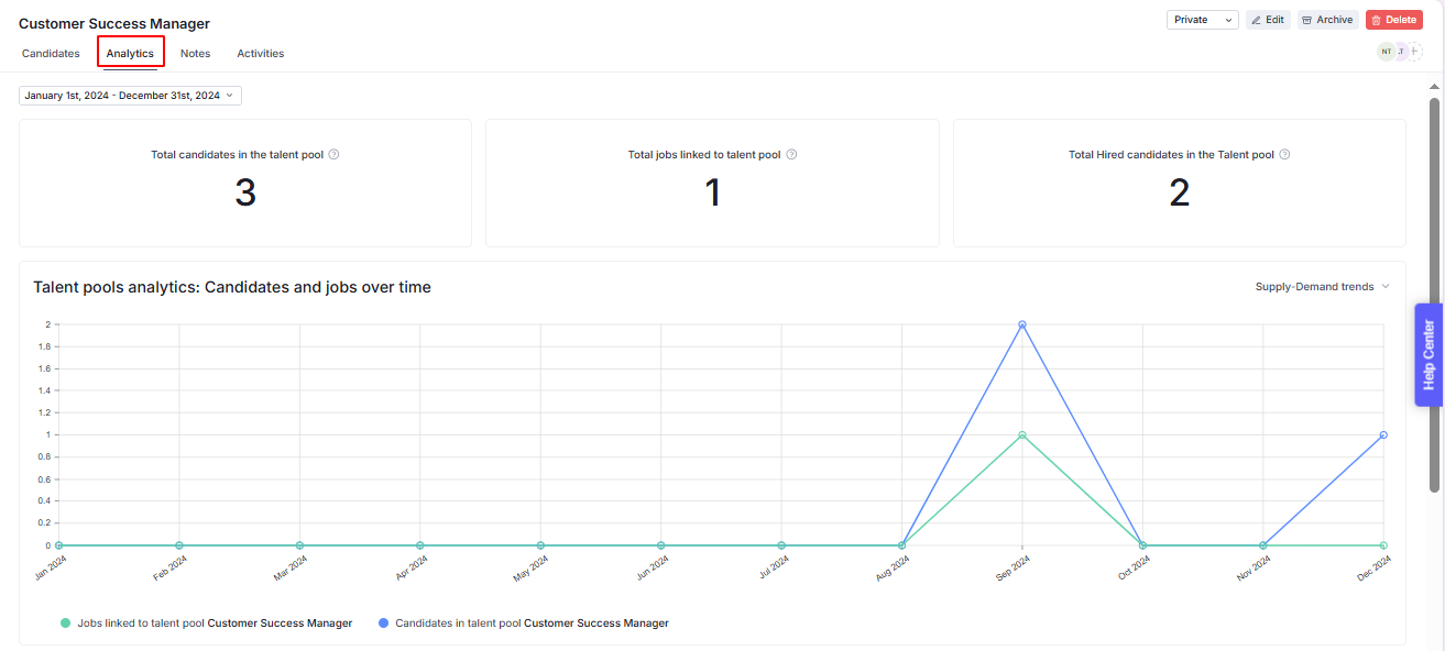 The Talent Pools Analytics helps you visualize and track the effectiveness of your talent pools over time. Here's what you can monitor:
