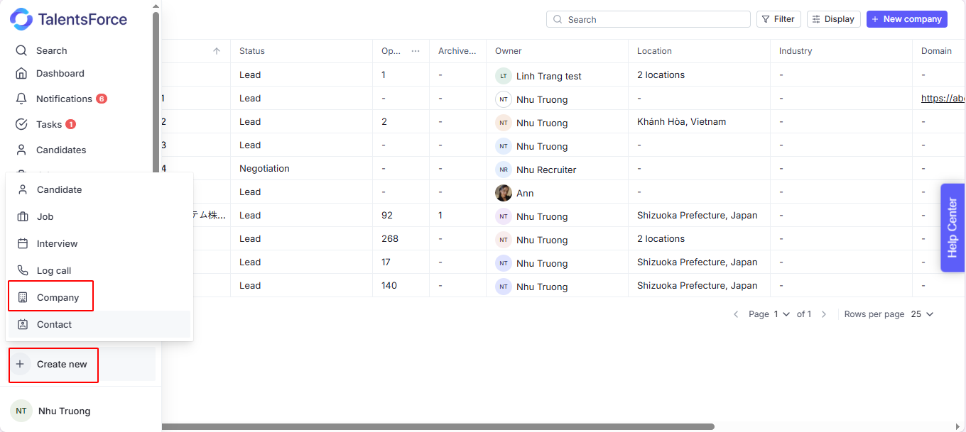 Owner: The default Owner is the company creator. However, a user with Admin access or the Owner can change this field.
