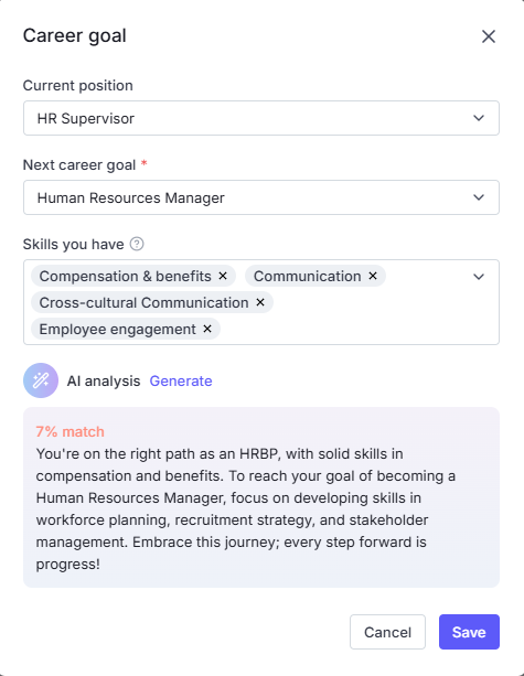 In the Next Career Goal section, choose your desired position from the predefined list.