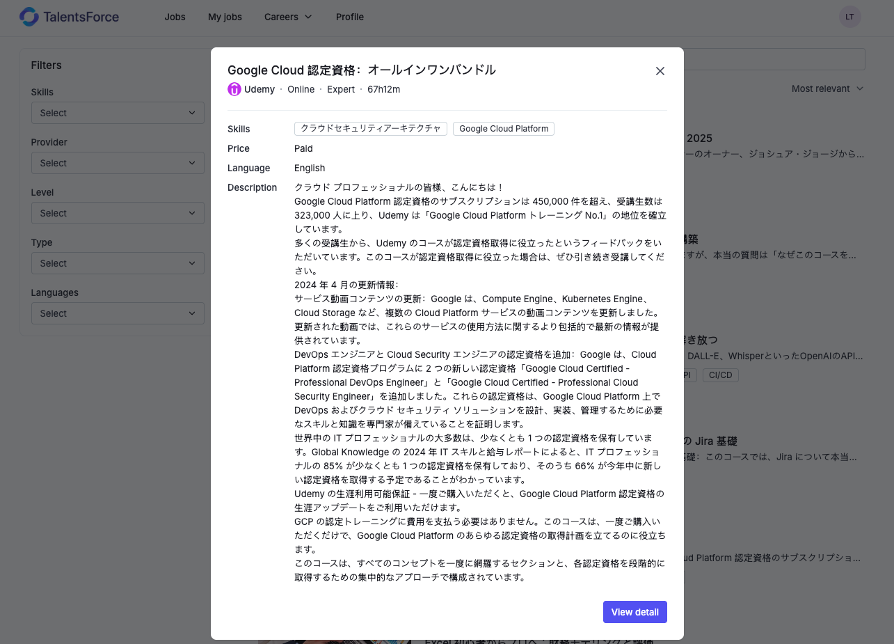 From the summary window, click View Detail to navigate to the provider’s official course page and access the full content.