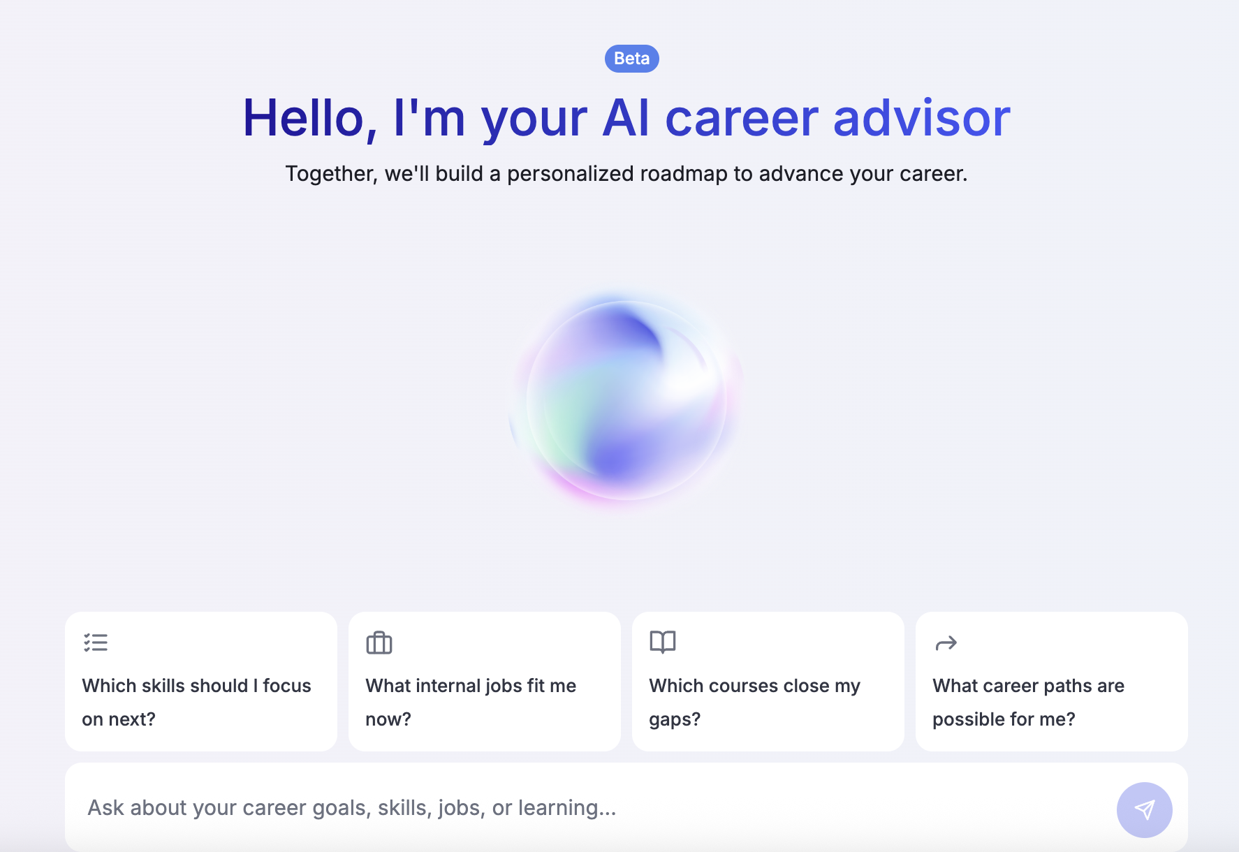 You can find the AI Career Advisor inside your Career Hub, when the Career Navigator feature is turned on for your company.
