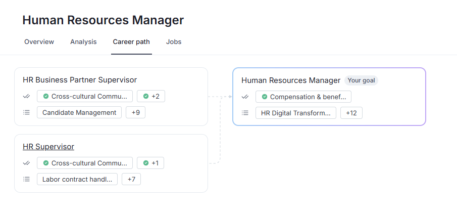 The Career Path highlights possible roles connected to your selected career goal, showing how positions may progress and evolve along the way.
