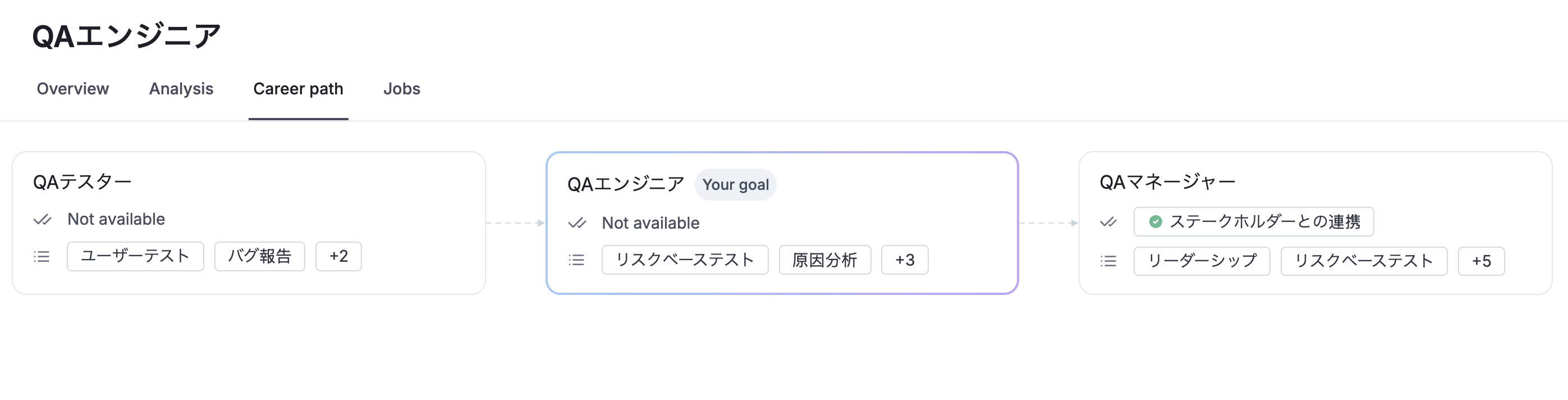 The Career Path highlights possible roles connected to your selected career goal, showing how positions may progress and evolve along the way.