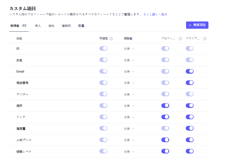 カスタム項目 | TalentsForce