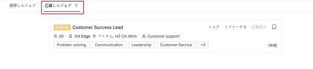 応募したジョブ: 応募済みのジョブ一覧が表示されます。このタブは、Career Hub が応募機能を提供している場合のみ表示されます