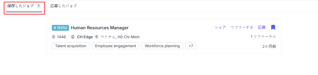 保存したジョブ: 求人タブで後から確認するために保存したすべてのジョブが表示されます。