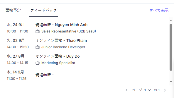 チームや部門の割り当てに関係なく、テナント内のすべての求人に紐づく面接予定を閲覧できます。